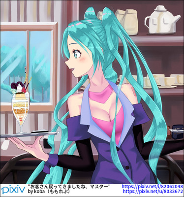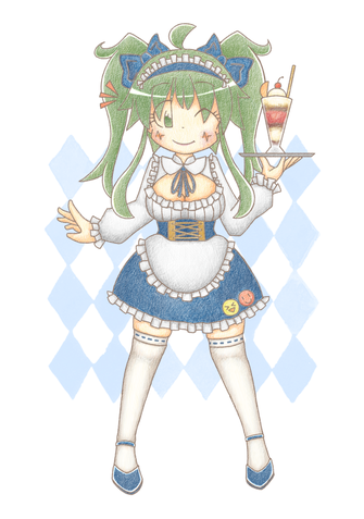 ウェイトレスさんwithクリームソーダ | ほそぼそ #pixiv https://www.pixiv.net/artworks/90043114 #ウェイトレス
