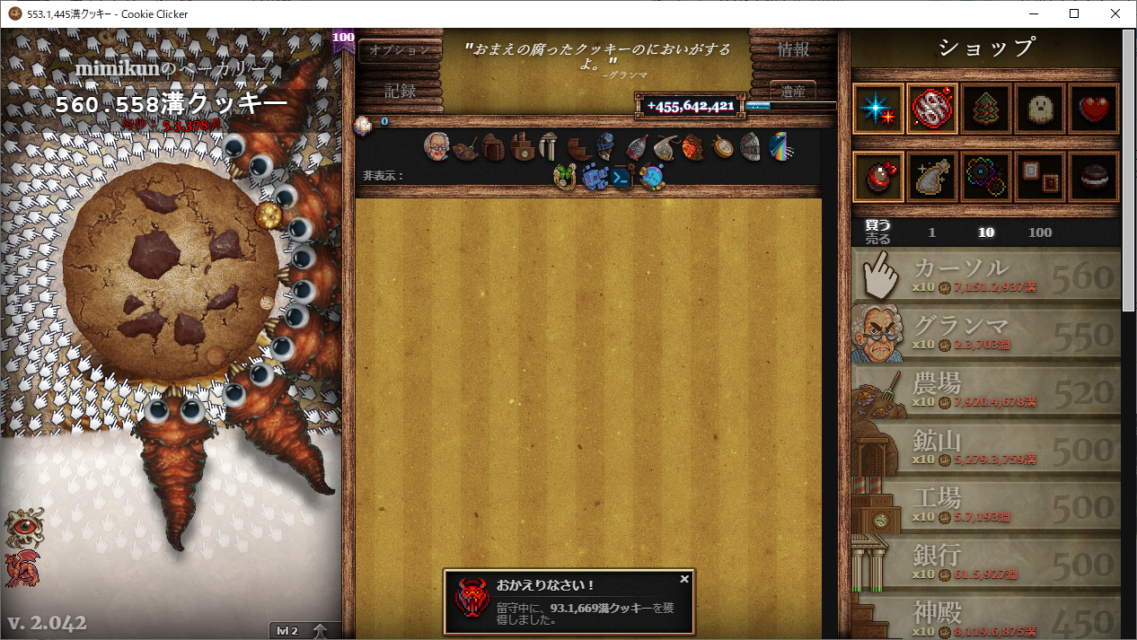 110万HCで買えるやつなんかあったかな #クッキークリッカー