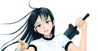 #グレートソード #武器 #ブルマ #体操着 #女子高生 #黒髪ロング #女の子 #オリジナル #pixiv