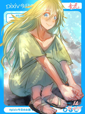 #pixivsketch #波 #金髪 #ワンピース #海 #sketchドロー #サンダル #pixiv今日のお題 #sensei