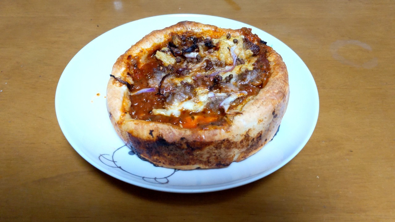 美味しんぼで知ったシカゴピザという食べ物をテイクアウトしてきた。サイズは普通サイズでも生地が分厚い上に具がぎっしり詰まっていたから食べごたえがあったな。#シカゴピザ