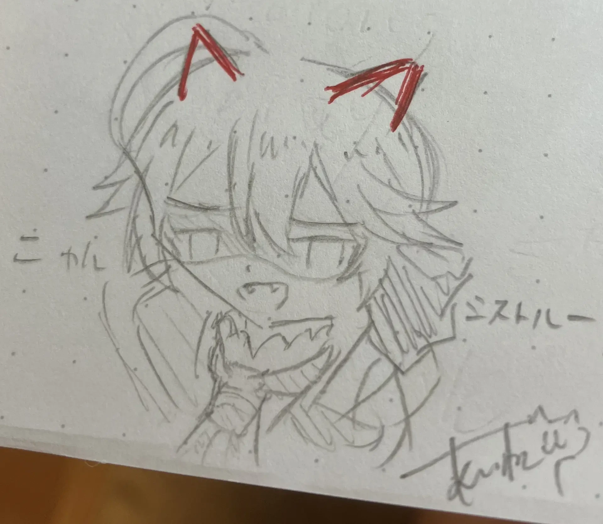 絵を描くたびに毎回のように何かを忘れるあいねこPさん、今回はナルシストルーのサイドテールを忘れました(なので加筆して再喝です💦)