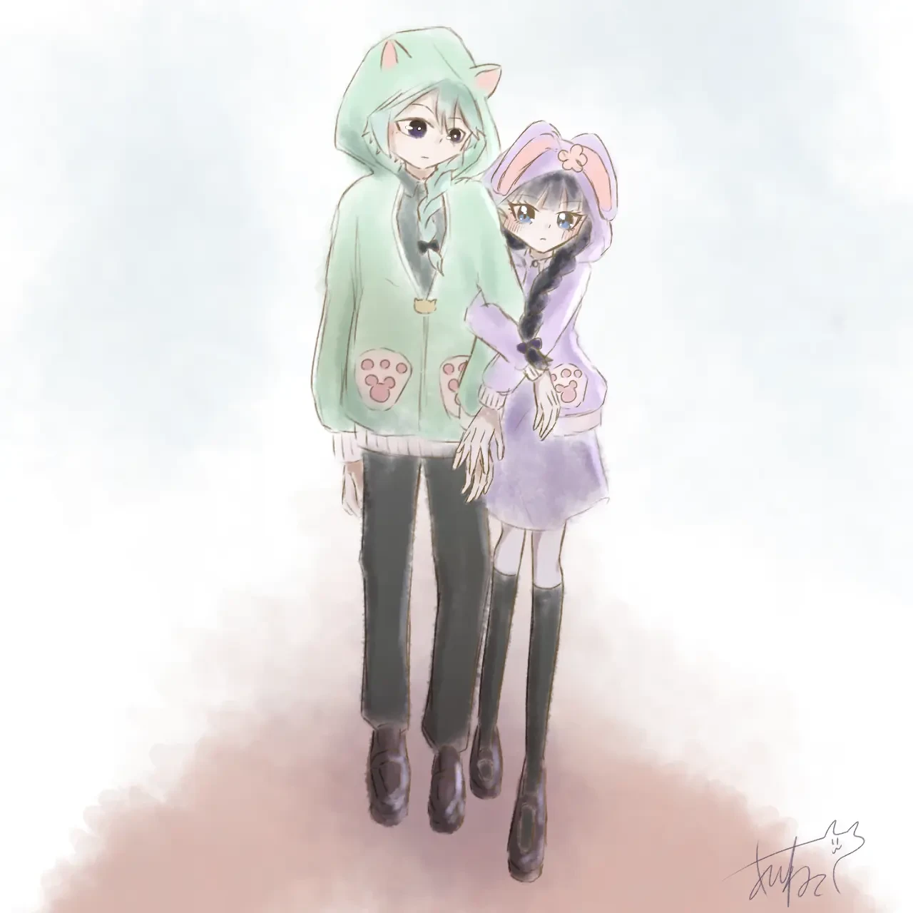 ふと家にあるパーカー思い出してナルあまに着せたくなったので描いたらくがき。季節外れ感がすごいw