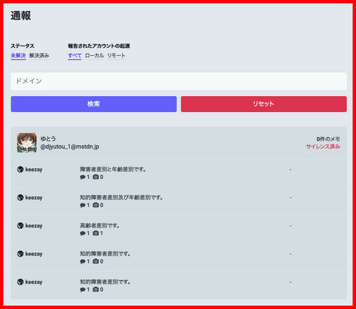 そもそも私の場合、マストドンは検索がほぼ不可能なので、TwitterのBAN祭りのような通報活動は無理という主張なんですが、そういうのも検索して確認できないのがマストドンではあります。