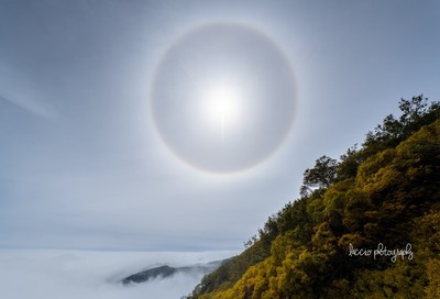 うすい雲に含まれる小さな氷の粒に光がぶつかって曲げられることで出現すると言われています。