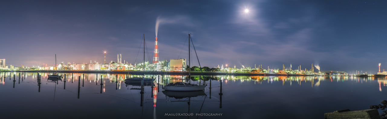 #tokyocameraclub #四日市工場夜景 #パノラマ写真 #リフレクション