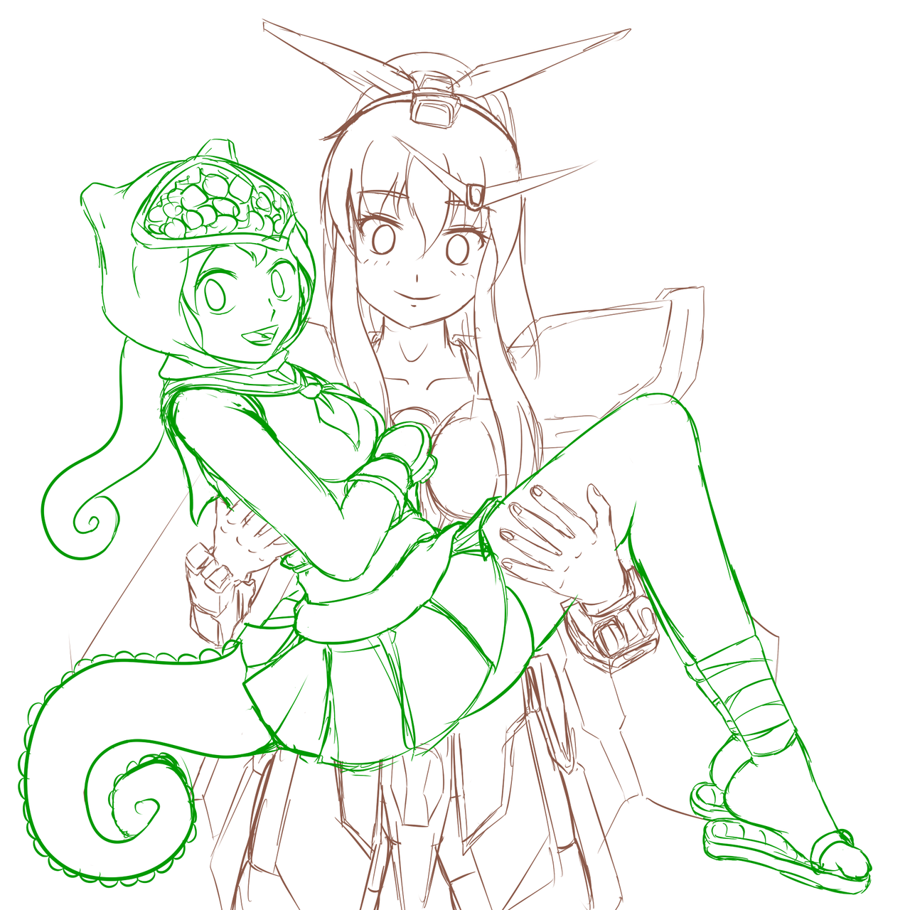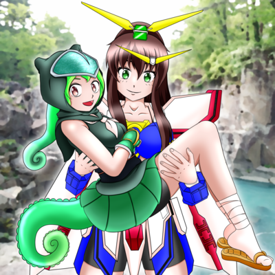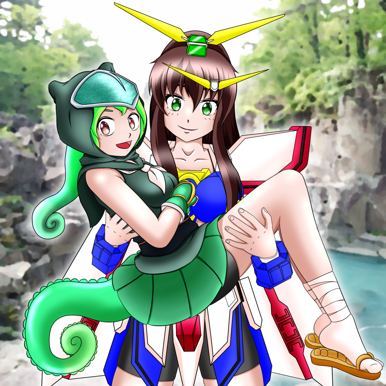 MSっ娘のゴッドガンダムにお姫様抱っこされるパンサーカメレオン(けものフレンズ)の下描き