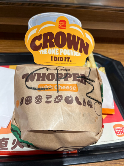 バーガーキングのCROWN THE ONE POUNDER、セルフオーダーシステムでハーフカットが無事選べた。金額的には安い食べ放題が視野に入るレベルだけどね #フォトジェ肉 #gochisou_photo
