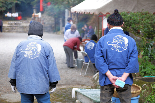 お汁粉の振る舞いの一場面