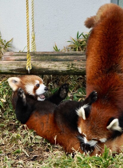#redpanda #徳山動物園 #シセンレッサーパンダ #レッサーパンダ #子ども #ルールー #父 #福福 #フーフー #まねっこ #親子