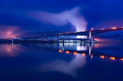 「Light trace of big bridge」 location:島根県松江市・江島大橋