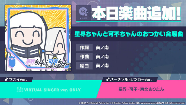 「星界ちゃんと可不ちゃんのおつかい合騒曲」を追加🎶