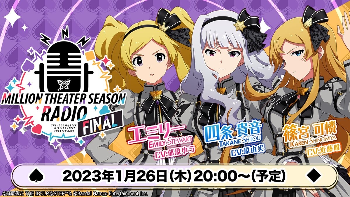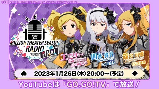 【ミリシタ】2023年1月26日(木)20:00~ 「MILLION THEATER SEASON RADIO #19」配信予定! #ミリシタ #ミシシラ #idolmaster https://idolmaster-official.jp/news/01_7744
