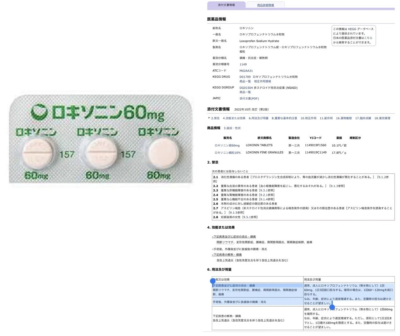 そこまで痛みを止めたいなら、ロキソニンの量を減らしつつ、ロキソニンに作用機序が違うカロナールの併用を提案し、処方変更になった。