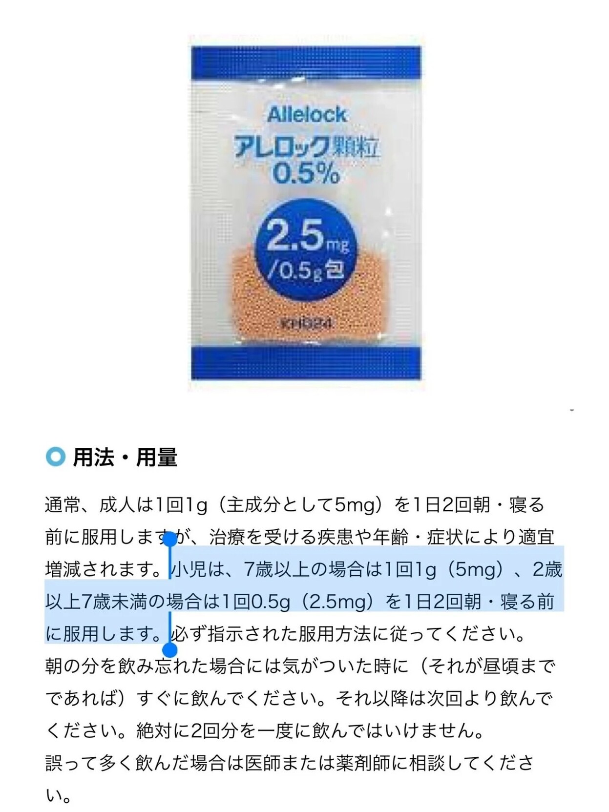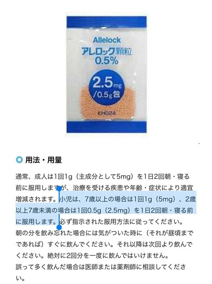 お子様が9歳にも関わらず1日1gという7歳未満の量だった。疑義したら、やはりミスで1日2gへ変更になった。添付文書に書いてることだが、すぐに気づけるのが薬剤師かな?