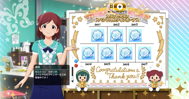 2023/02/20(月) ~ 2023/02/26(日)まで、『ミリオンライブ!10周年カウントダウンスペシャルログインボーナス』を開催中です!