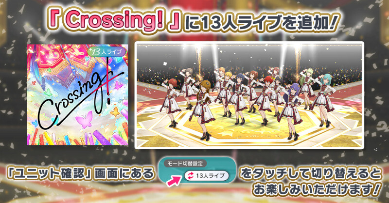 楽曲「Crossing!」に13人ライブを追加しました!