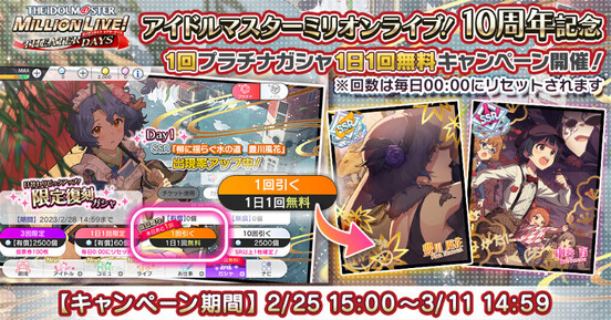 『アイドルマスター ミリオンライブ!10周年記念 1回プラチナガシャ1日1回無料キャンペーン』を開催中です!