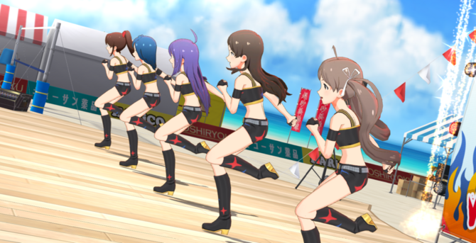 悪質衣装な美奈子,百合子,杏奈,志保,星梨花.ほとんど水着みたいなものだから, バリボーMVが合いますね #ミリシタ #ミリシタスクショ夜の1枚