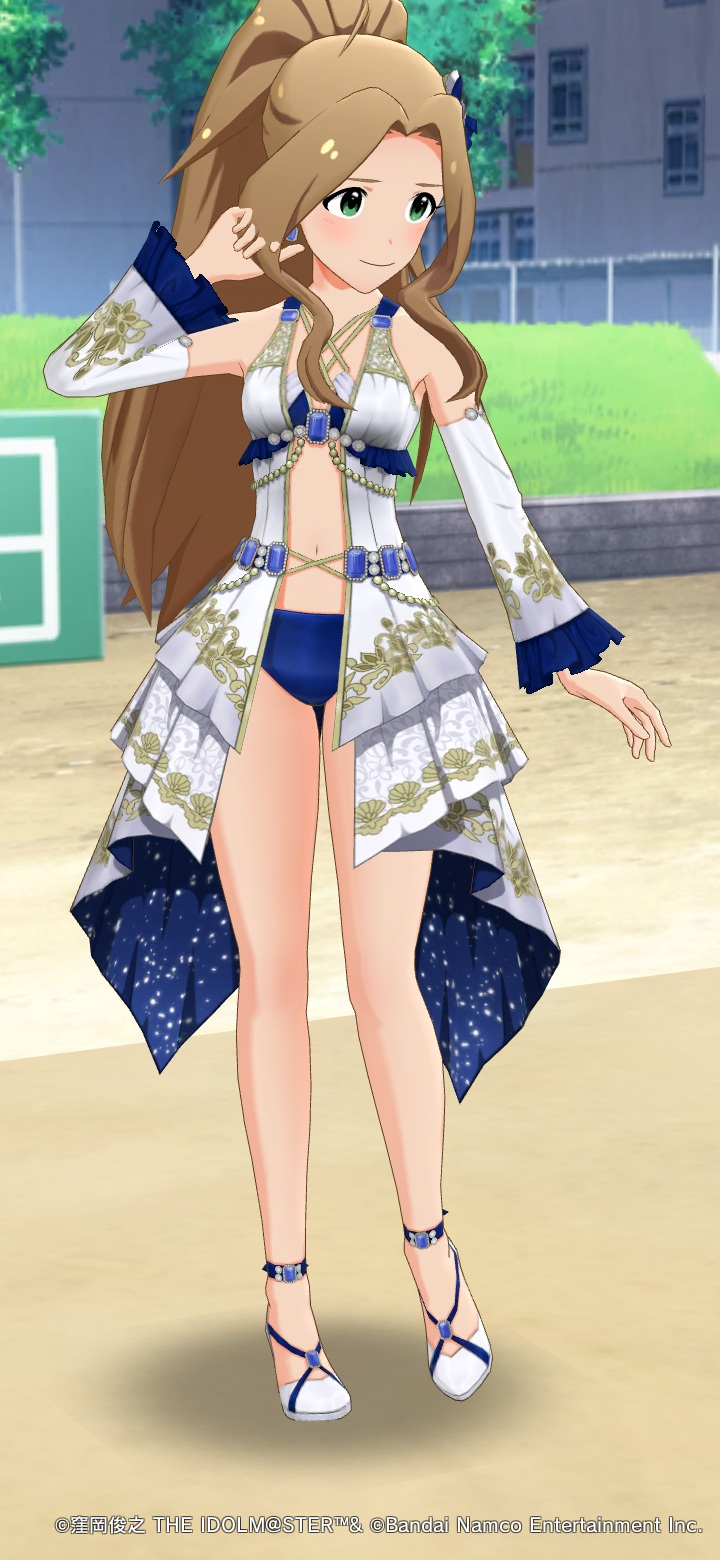 校庭で水着やライブ衣装を着るミスマッチ感でもこれはこれでいい。無理強いさせられたっぽさあるよね#ミリシタ #ミリシタスクショ夜の1枚