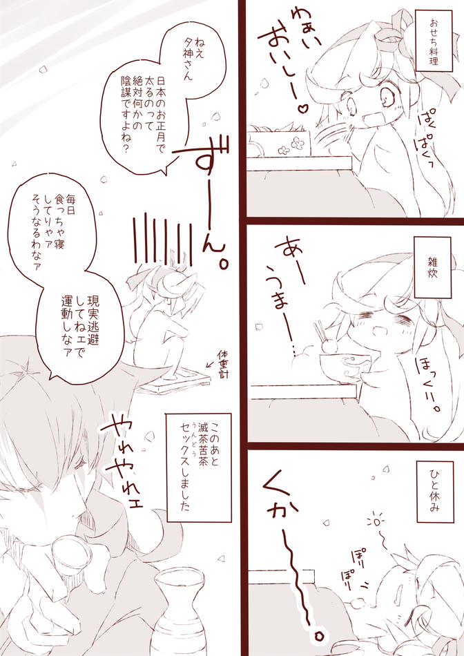 【らきがき】ユガココアホ漫画『お正月太りには気を付けましょう( ˘ω˘ )』