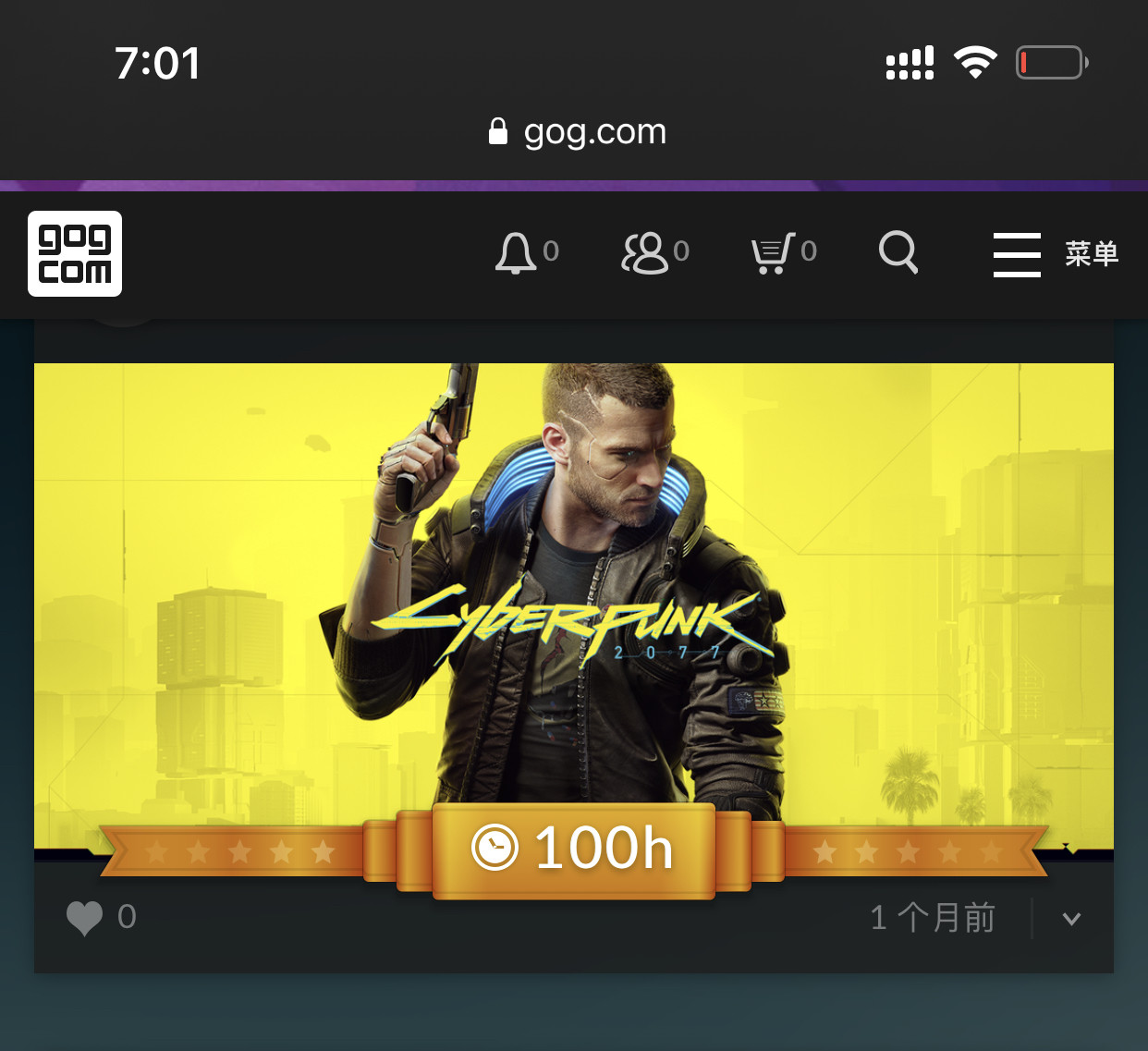 然后我默默掏出手机打开gog进入赛博朋克2077 玩家动态给他看超过100h游戏成就。