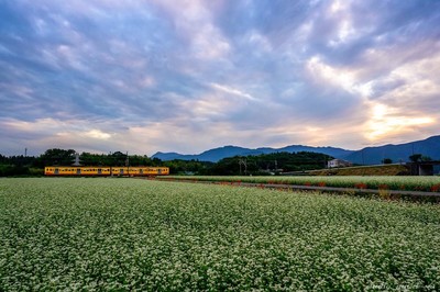 蕎麦畑と黄色い電車