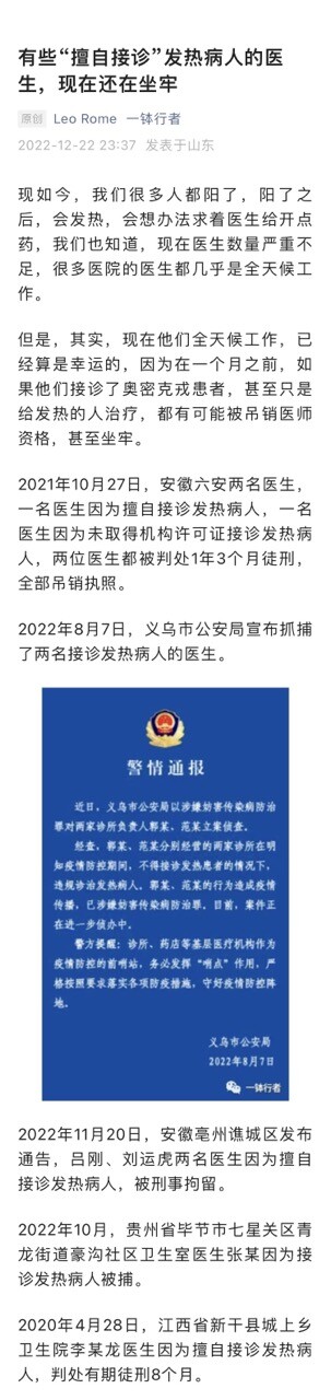 《有些“擅自接诊”发热病人的医生,现在还在坐牢》