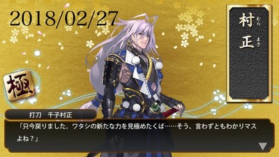 太郎太刀・次郎太刀・千子村正・亀甲貞宗・鯰尾藤四郎・骨喰藤四郎・厚藤四郎の軽装を手に入れた!!(テッテレー♪)