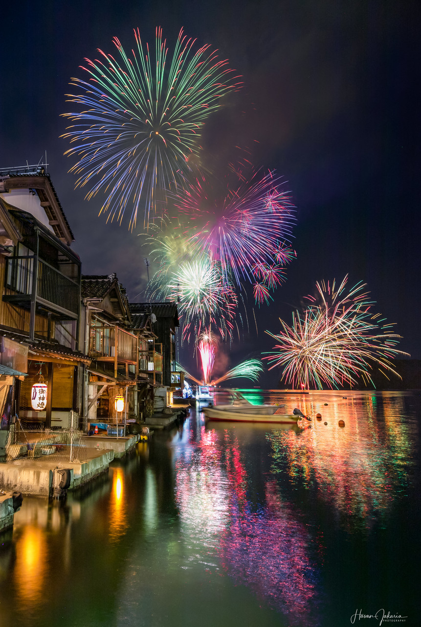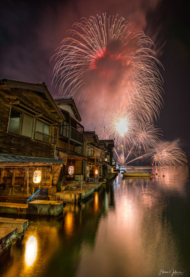 Fireworks over the "Venice of Japan" Ine no Funaya (伊根の舟屋)