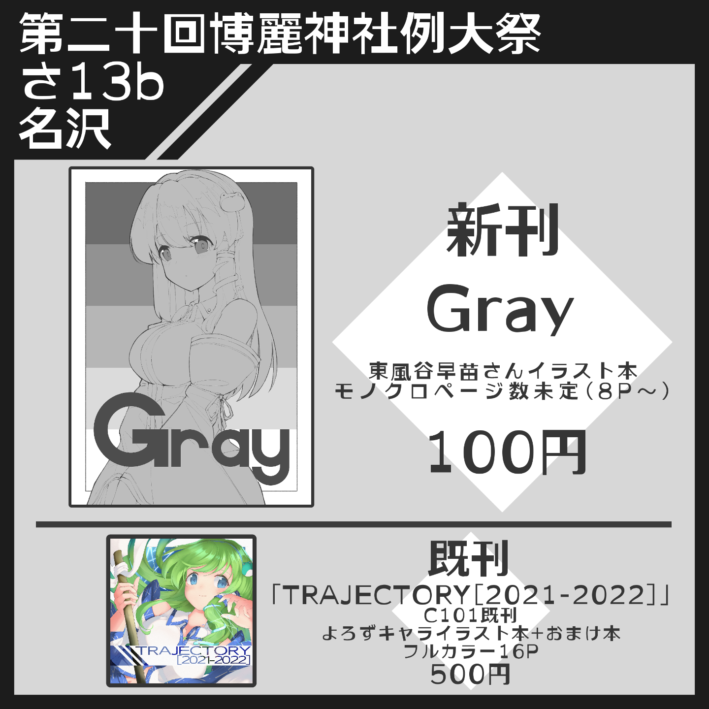 さ-13b 「名沢」にて新刊「Gray」、C101既刊「TRAJECTORY[2021-2022]+おまけ本」を頒布します