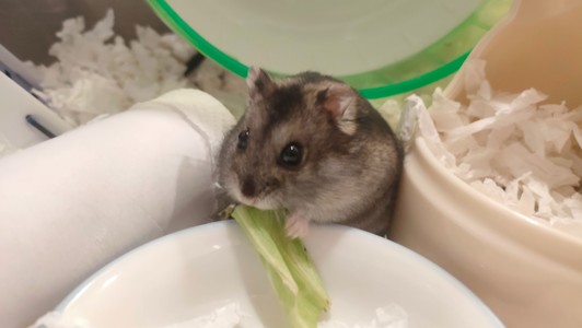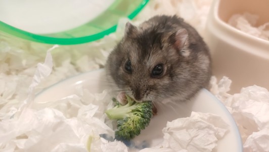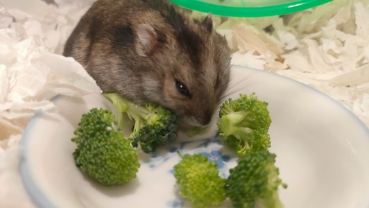 認真吃花椰菜的倉鼠
