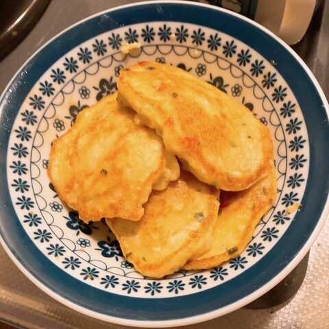 豆腐、カニカマ、葱、だしの素、麺つゆ、片栗粉、卵を適当に混ぜてゴマ油で両面焼いて最後に万能つゆで蒸し焼きにしたら美味しかった。卵は混ぜずに包んでも良い #備忘録