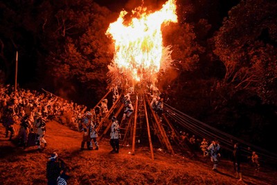 室町時代より続く火祭りは日本一豪快なもので、他の追随を許さぬものがある。
