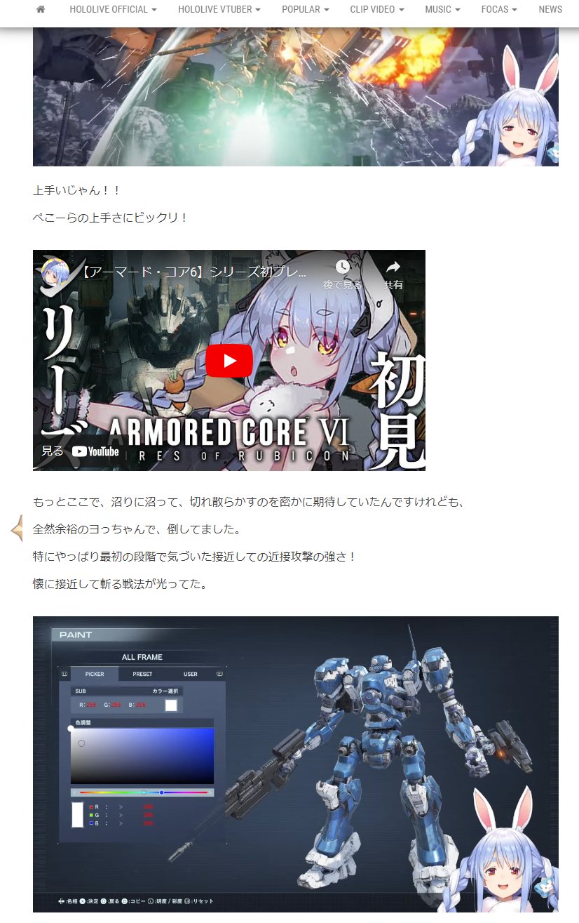 【アーモンド・コア6】アーマード・コア6であっさり最強ヘリさんを倒すぺこーら!【 #兎田ぺこら / #ホロライブ 】を投稿しました!