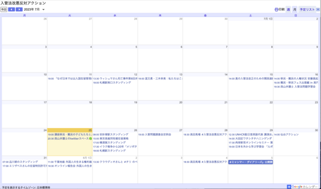#入管法改悪反対アクション Googleカレンダーを作りました。(とりいそぎ8月1週目まで)
