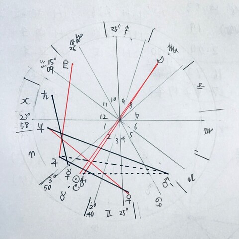久しぶりに手描きでホロスコープ。ガチ計算ははじめて。