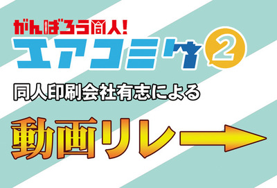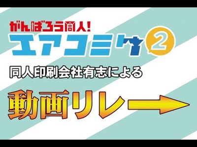 RT @chiruson: 【拡散希望】同人印刷会社24社による動画リレー配信開始。コロナ禍の中ですが皆様に同人印刷会社が元気に頑張っている姿をお見せしたいと有志で動画リレーを作りました! 社長や中の人の生の声を是非お聞きください!コチラから⇒ https://t.co/2g58rMBmaF #エアコミケ2 #がんばろう同人 #印刷会社 https://t.co/140OMyXuOC