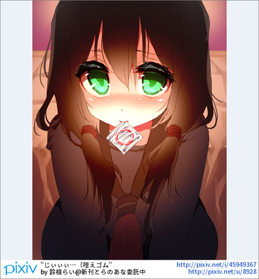 400いいねありがとですよ~(≧▽≦)!じぃぃぃ…(咥えゴム | 鈴根らい@新刊とらのあな委託中 #pixiv #R-18 #オリジナル #巨乳 #セーラー服 #咥えゴム #おっぱい #爆乳 #ロリ巨乳 #コンドーム https://www.pixiv.net/member_illust.php?mode=medium&illust_id=45949367
