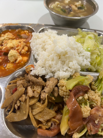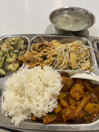 周一吃了糖醋炸肉。食堂为了不遗菜都是炸物要吃再拌进糖醋酱里搅拌,酥皮不脆了但泡软了汁更好吃,能配着嘎嘎造两碗饭。