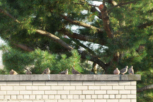 今天咕咕们吃完饭就不见鸟影了,一看才发现都在对面晒这个傍晚最后的太阳。还有一只特立独行的,不愿和大部队为伍w