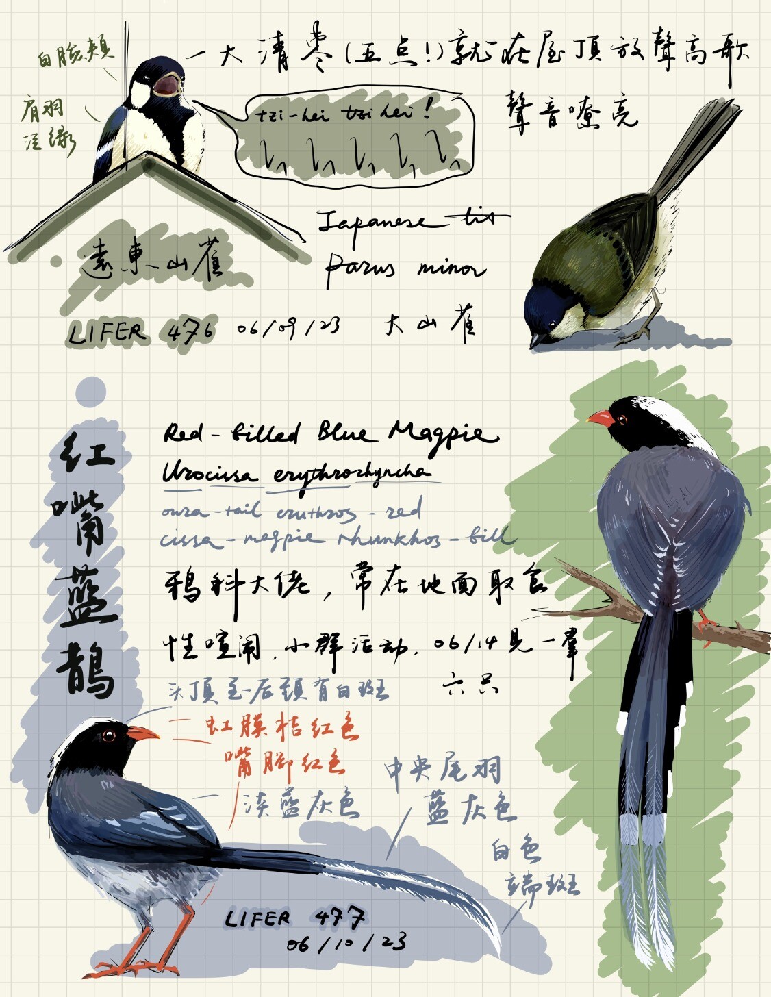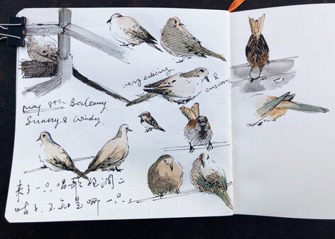 还在吃饭的咕咕和麻雀实在不是很好的速写对象,只有酒足饭饱后的咕咕还相对安分些。