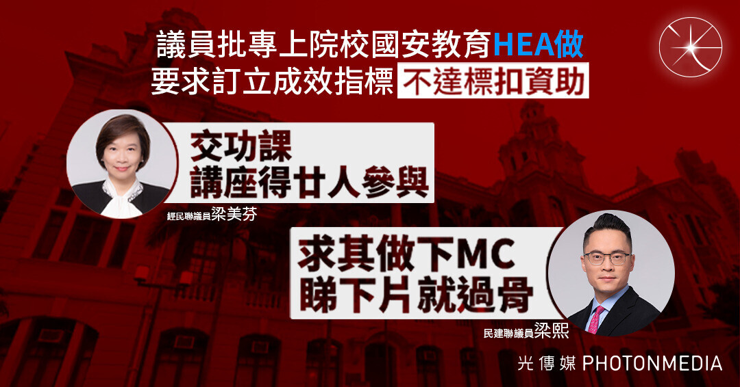 議員批專上院校國安教育「hea做」 要求訂立成效指標 不達標「扣資助」