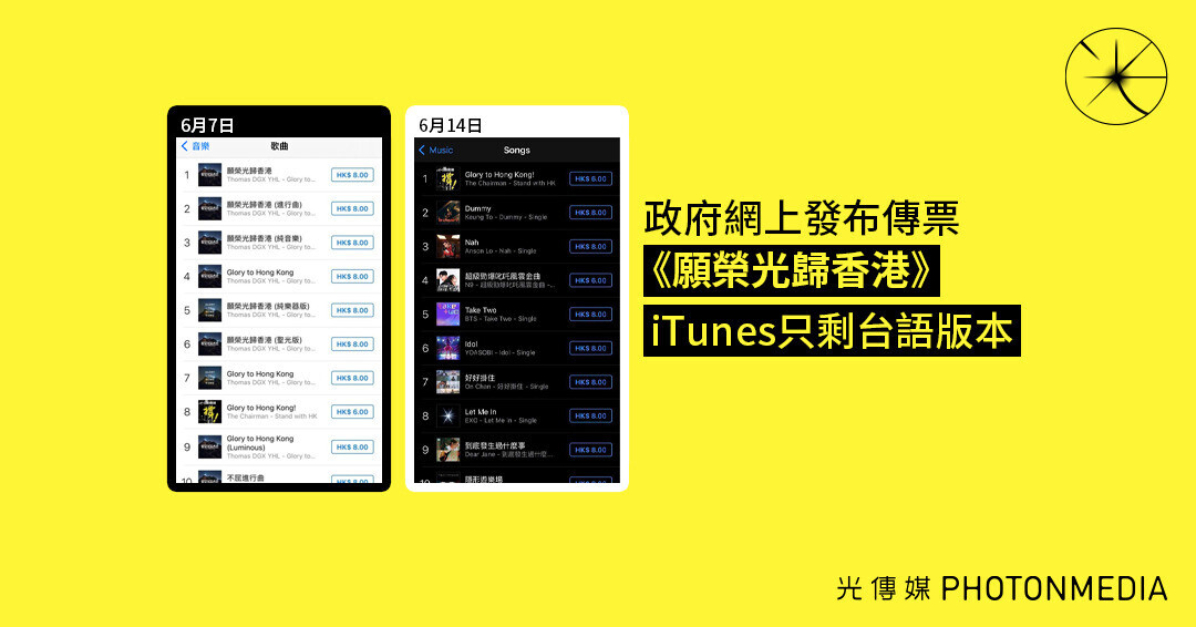 政府網上發布傳票 《願榮光歸香港》iTunes只剩台語版本