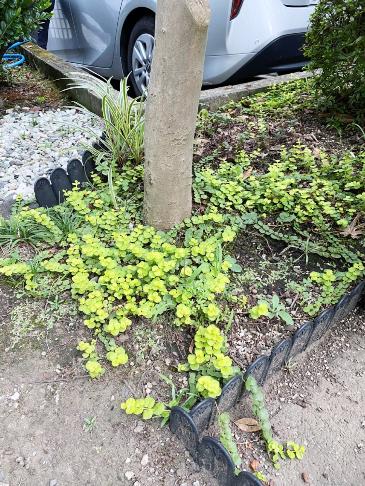 左は試しに植えてみたヒメイワダレソウ(クラピア)
