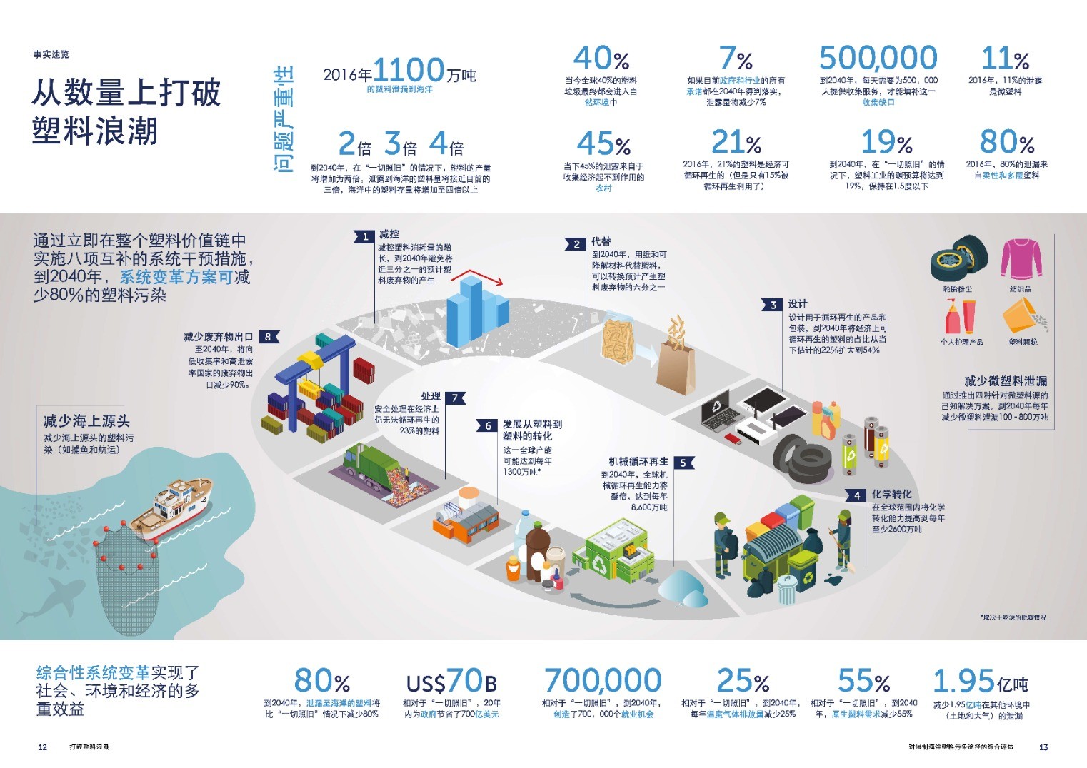 PEW基金会和SYSTEMIQ联合发布报告,指出,如果我们采取系统性措施,到2040年,泄露至海洋的 #塑料 将降低80%,并且,在在这20年内,将为各国政府节省700亿美元的支出,创造70万个工作岗位,由于塑料制造而产生的温室气体排放将减少25%,对原生塑料的需求将减少55%
