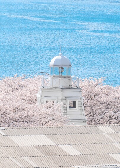 サクラ越しにみる海はさぞ眺めが良いことだろう灯台に登れたらいいのにな(╹◡╹)