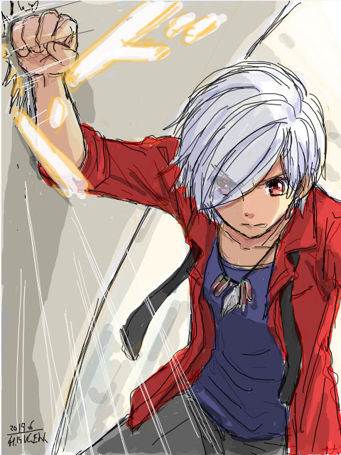 #pixivsketch #壁ドン #赤服 #白髪 #創作 #手ブロ