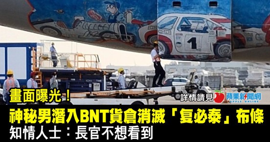 畫面曝光!神秘男潛入BNT貨倉消滅「复必泰」布條,知情人士:長官不想看到