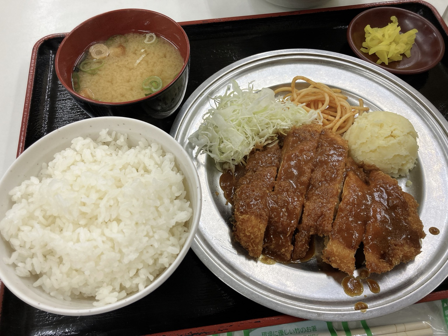 500円(!?)のチキンカツ定食に市岡海老蔵ミニ、そしてヤクルトの中ジョッキ🍚 サクサクボリューミーでおいしくてお腹いっぱい☺️✨好きだけど、なんとなく喉にカッとくる甘さの印象があったヤクルトも意外にスルスル飲めました!あと焼肉定食のたれミニも購入🥩また来ます☺️